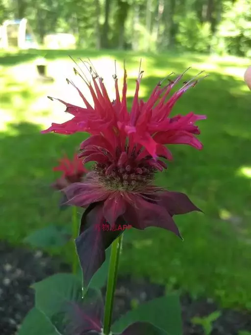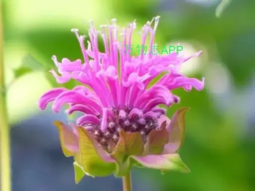 美国薄荷(学名:Monarda didymaL.):也叫马薄荷,属多年生草本植物,株高100-120厘米,茎直立,四棱形,叶质薄,对生,卵形或卵状披针形,背面有柔毛,缘有锯齿。花朵密集于茎顶,萼细长,花冠长5厘米,花簇生於茎顶,花冠管状,淡紫红色,叶芳香。轮伞花序密集多花,花筒上部稍膨大,裂片略成二唇形。花期6-9月。