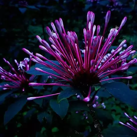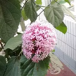 新叶紫色,10月中旬变为紫红色。6月中旬至9月开花,花葶高40-50厘米,整个花序有180-280朵小花,花序直径约为6厘米,小花 冠唇形开裂大,下唇边缘波状,柔粉色,有白色窄边,整个花序呈丰满的半球形;