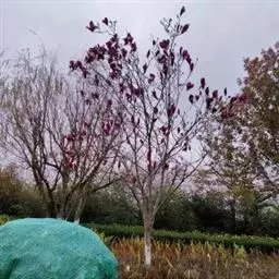 圃地选择与整理。栽培圃地选择背风向阳、土壤深厚肥沃、离水源较近、交通方便的地方。将圃地全部深翻1遍,深度40cm为好,再将圃地整理成高50cm、宽100cm、长10m的畦,床面要求平整;排水沟宽50cm,要求排灌方便。 移栽定圃。移栽前,在床面上挖穴,穴间距1.8 m。穴底部施复合肥50g左右,其上铺一层腐熟的农家肥3kg左右,再回填表土至穴满。把培养皿的硬塑料袋脱去,将幼苗栽植于穴上,根部打紧并培成馒头形,浇透定根水。移栽定圃需在4月初全部完成。 中耕除草。每次浇水后,土壤表皮会发生板结,可适时进行中耕,以保持土壤的通透性和改善土壤的生理条件,同时还可以去除杂草和防止病害的发生。可以采用3%草甘膦除草剂进行喷雾杀灭杂草。 水肥管理。5月苗木进入生长阶段,肥料要施在苗木旁边50cm处,切不可直接施在苗木根部,防止发生肥害。9月初对苗木施5%磷钾肥1次,加快苗木顶端木质化。 整形修剪。5月上旬当幼苗长到20 cm以上时,应及时除去位置不当或过密的芽及枝条,以保证苗木顺直,提高苗木干型质量。如果苗木多年继续培育,要注意苗木密度,及时移栽。