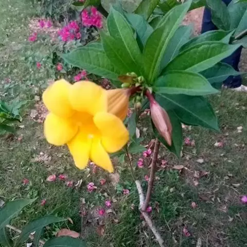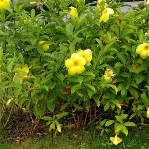 黄蝉属,夹竹桃科,约15种,分布于热带美洲,中国引入栽培的有黄蝉A. neriifolia Hoo…