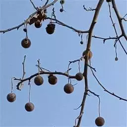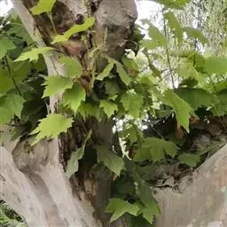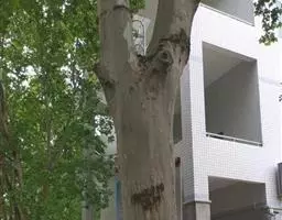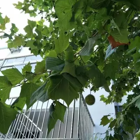 二球悬铃木的亲本三球悬铃木,又叫裂叶悬铃木、鸠摩罗什树。公元401年,印度高僧鸠摩罗什到中国传播佛教,携带这种树,种植于西安附近的户县古庙前,尚存树干得有4人才能合抱。这是我国最早引种的悬铃木了。可惜,这种三球悬铃木在西安也没推广,西安的行道树是从上海引种的二球悬铃木。