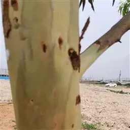 育苗管理 悬铃木插穗上主芽的两侧有副芽和潜伏芽,有时叶芽在未生根前萌发,形成假活现象,但抽出的新枝不久就会枯死,约经10天左右,副芽又会萌发,这标志着新的幼根已经长出,插穗已经成活。生根后,萌芽条高6厘米~10厘米时,留一个强壮枝培育主干,其余均剪除。如发现有萎芽现象,可摘去1~2片叶,或摘去主芽条,保留副芽条。生长期间,枝叶过密时要适当剪去二次枝,摘除黄叶,保持通风透光。