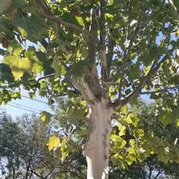 而悬铃木则树干粗大(也不是很粗,比梧桐粗),叶片亦呈三角星状,只是大得多。果实非常小,不能吃。叶子在秋天变成褐黄色,肯定没有梧桐的叶子好看。树冠很大,且因叶子很大,几乎完全遮住了树冠上面的阳光,所以最是适合做人行道遮荫树。