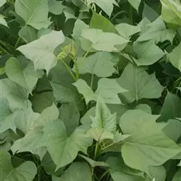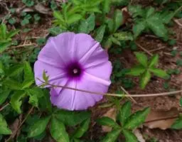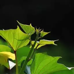 番薯 Lam.),多年生草质藤本植物,具有乳汁;其块根为白、红或黄色;茎生不定根;叶呈宽卵形或卵状心形,叶色有浓绿、黄绿、紫绿等,前端渐尖,基部呈心形或近平截;花冠为粉红、白、淡紫或紫色,呈钟状或漏斗状,无毛;蒴果呈卵形或扁圆形;由于番薯是于异花授粉,自花授粉常不结实,所以有时只见开花不见结果。 种子1-4粒,通常2粒,无毛。番薯原产于南美洲及大、小安的列斯群岛,现已广泛栽培在全世界的热带、亚热带地区,但在一些较北的地区如黑龙江省也已栽种成功,中国大多数地区都普遍栽培。番薯适应性强,喜温暖多光而不耐霜冻,抗旱耐碱,适种于肥沃而排水良好的砂质壤土,是一种易于保收的作物。番薯是一种高产而适应性强的粮食作物,在中国南方,有“一造番薯半年粮”的说法, 与工农业生产和人民生活关系密切;块根除作主粮外,也是食品加工、淀粉和酒精制造工业的重要原料;根、茎、叶可作