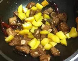 取菜籽油烧热,入花椒炸香、放入豆瓣酱炒制水分蒸发。此时放入泡好的干辣椒继续翻炒。待所有调料融合后放入卤制好的鸡脆骨,翻炒均匀即可。 燕山鸡脆