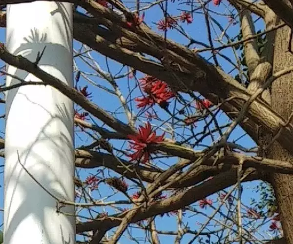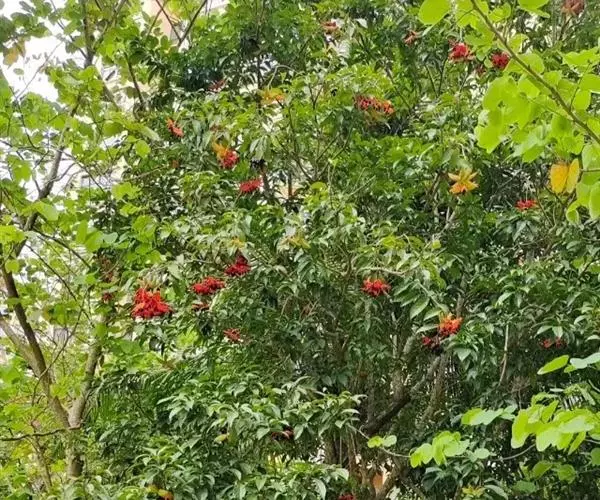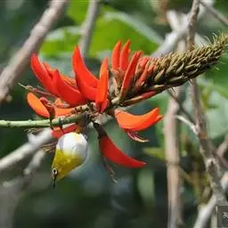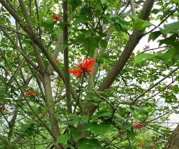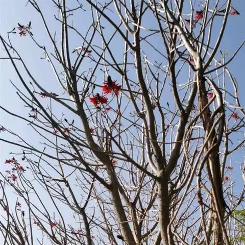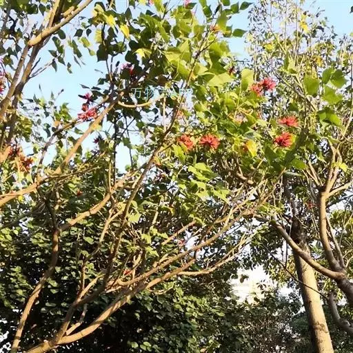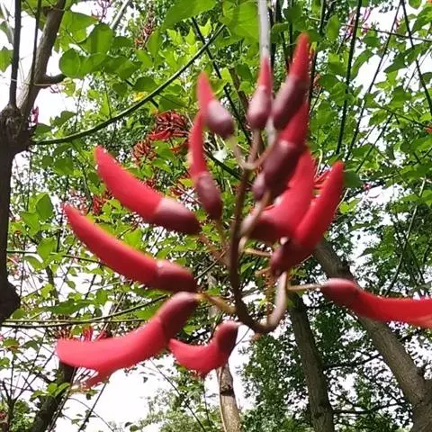 树叶、树皮和树根可入药,有解热和利尿的功效。 刺桐(图5)