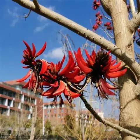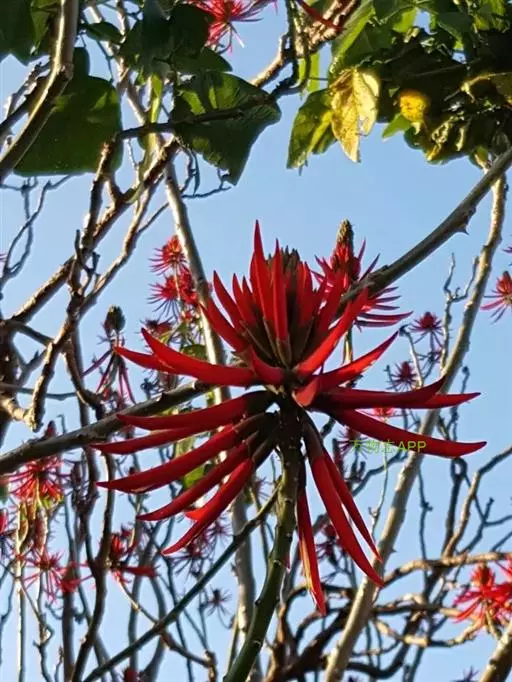 在中国某些地方的旧俗里,人们曾以刺桐开花的的情况来预测年成:如头年花期偏晚,且花势繁盛,那么就认为来年一定会五谷丰登,六畜兴旺,否则相反;还有一种说法是刺桐每年先萌芽后开花,则其年丰,否则反之。所以刺桐又名“瑞桐”。代表着吉祥如意。因为这一点,在宋代还引出一场小小的争论呢!争论的一方是作为廉访使到泉州的丁渭,他很希望能先看到刺桐的青叶,使泉州年谷丰熟,于是曾写下这么一首诗:“闻得乡人说刺桐,叶先花发卜年丰。我今到此忧民切,只爱青青不爱红。”争论的另一方是到泉州来当郡守的王十朋,他与丁渭抱有相同的愿望,但他不相信先后花或先花后芽那一套谶语。为此也写下了一首诗:“初见枝头万绿浓,忽惊火伞欲烧空。花先花后年俱熟,莫道时人不爱红。”虽有争论,但流传人间的却是一段佳话。真是可爱的公仆可爱的花。 刺桐(图9)