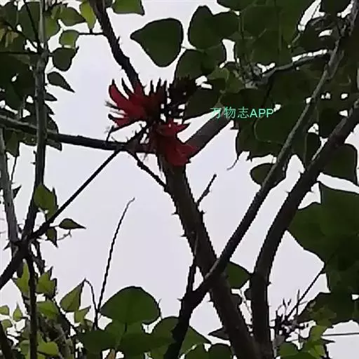 刺桐是落叶大乔木,高可达20米。树皮灰褐色,枝有明显叶痕及短圆锥形的黑 刺桐 色直刺,髓部疏松,颓废部分成空腔。羽状复叶具3小叶,常密集枝端;托叶披针形,早落;叶柄长10-15厘米,通常无刺;小叶膜质,宽卵形或菱状卵形,长宽15-30厘米,先端渐尖而钝,基部宽楔形或截形;基脉3条,侧脉5对;小叶柄基部有一对腺体状的托叶。