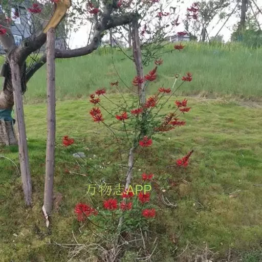 刺桐(图6) 盆栽管理较为粗放,但出房前应隔年翻盆一次,盆土宜用塘泥2份、堆肥和荟糠灰各1份混合使用。植株需要进行重剪,对直径l厘米以下的一年生枝仅留1-2个芽,直径1厘米以上的可留2-3个芽。重截后,会刺激隐芽和腋芽抽出强壮的新梢,长大后可使满树着花繁茂。