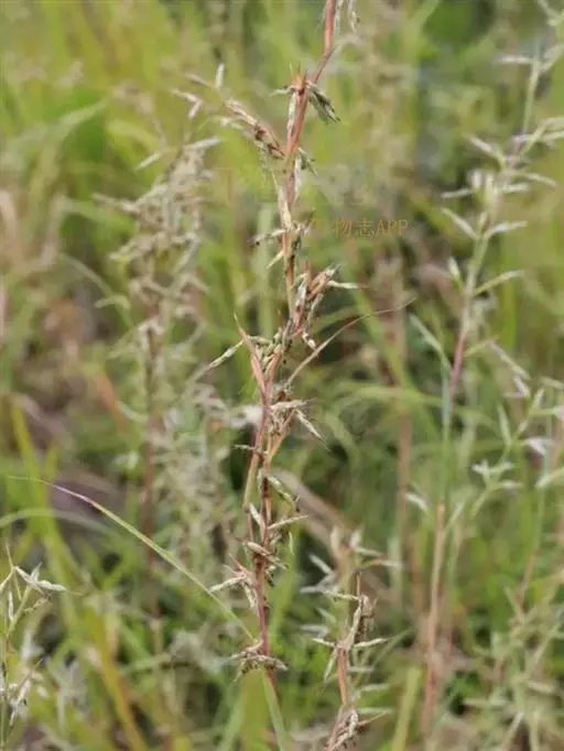 多年生。秆直立丛生,高60-100厘米,具3-5节,节下被白粉或微毛。叶鞘无毛, 橘草 下部者聚集秆基,质地较厚,内面棕红色,老后向外反卷,上部者均短于其节间;叶舌长0.5-3毫米,两侧有三角形耳状物并下延为叶鞘边缘的膜质部分,叶颈常被微毛;叶片线形,扁平,长15-40厘米,宽3-5毫米,顶端长渐尖成丝状,边缘微粗糙,除基部下面被微毛外通常无毛。伪圆锥花序长15-30厘米,狭窄,有间隔,具1-2回分枝;佛焰苞长1.5-2厘米,宽约2毫米(一侧),带紫色;总梗长5-10毫米,上部生微毛;总状花序长1.5-2厘米,向后反折;总状花序轴节间与小穗柄长2-3.5毫米,先端杯形,边缘被长1-2毫米的柔毛,毛向上渐长。无柄小穗长圆状披针形,长约5.5毫米,中部宽约1.5毫米,基盘具长约0.5毫米的短毛或近无毛;第一颖背部扁平,下部稍窄,略凹陷,上部具宽翼,翼缘密生锯齿状微粗糙,脊间常具2-4脉或有时不明显;第二外稃长约3毫米,芒从先端2裂齿间伸出,长约12毫米,中部膝曲;雄蕊3,花药长约2毫米;柱头帚刷状,棕褐色,从小穗中部两侧伸出。有柄小穗长4-5.5毫米,花序上部的较短,披针形,第一颖背部较圆,具7-9脉,上部侧脉与翼缘微粗糙,边缘具纤毛。染色体数2n=20(Moriya A.,Kondo,1950)。花果期7-10月。