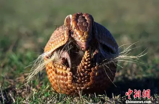 小犰狳身体的上表面,大部分的头部和尾巴,包括灵活的皮肤覆盖着 小犰狳2 一层盔甲骨板和坚硬的角质皮肤。小犰狳保护鳞甲的甲壳边缘是独特的锯齿状的。除了白线的中间,和沿横向边缘和尾巴、腹部偏黄,壳的颜色通常是深褐色。 在它的背部柔软皮肤上覆盖着粗黄色的鬃毛。 强大而又成熟的爪子使得小犰狳的四肢更具力量。 与其他犰狳物种相比,小犰狳的耳朵很小。