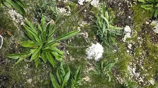 花葶由叶丛抽出,高10-40厘米,无叶,径2-4毫米,疏或密被白色贴伏或伸展长柔毛,具沟;头状花序单生茎顶,直立或微下垂,径3-4厘米,球形;总苞苞片2-3层,长卵形至卵状披针形,先端急尖,长1.2-1.8厘米,宽5-7毫米,脉不明显,被毛,边缘密被长柔毛;苞片线状倒披针形,长10-12毫米,基部有细爪,中脉显著,边缘被柔毛;小总苞长4-5毫米,径1.5毫米,筒状,基部渐狭,端略开张,具波状齿牙,外面被白色糙硬毛;花萼全裂,成20条柔软羽毛状毛;花冠筒状漏斗形,黄白色至淡紫色,长10-12毫米,外面被长柔毛,先端5浅裂,裂片钝,近等长,长约3.5毫米;雄蕊4,稍伸出花冠管外,花药黑紫色,长约3毫米;子房下位,包于小总苞内,花柱长约15毫米,伸出花冠管外,柱头扁球形,淡褐色。瘦果长3-5毫米,倒卵形,淡棕色,具8条纵棱,疏生贴伏毛,具棕褐色宿存萼刺20条,刺长约10毫米,被白色羽毛状毛。花果期7-10月。