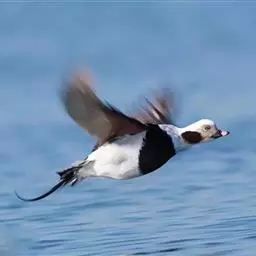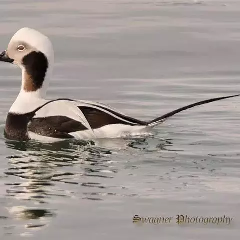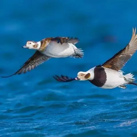 长尾鸭体长约58厘米,是中等体型的灰、黑及白色鸭,中央尾羽特长,雄鸟胸部的黑色斑块为特征。…
