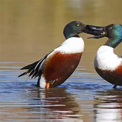 白背鸭(图2) 中型游禽,身长36~41cm,体重 450~907g,寿命15年。嘴角各有一块白斑,身上羽毛是棕黑相间的斑纹。与树鸭有密切的亲缘关系,不过有些特征却类似于硬尾鸭类。白背平时不可见,只在飞行中可见。