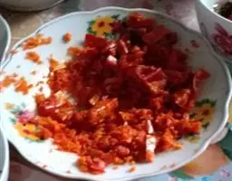 8、锅中留少许油,下蒜米和辣酱煸炒出香味