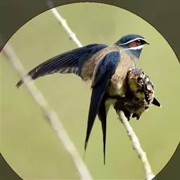 线尾燕,腹部接近纯白色,背部则为深紫色,头部的羽毛是栗色的。