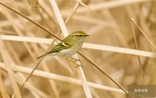 黄腰柳莺(Phylloscopusproregulus)身体比黄眉柳莺更小些,常与其他柳莺混集成群,在树枝间跳跃取食。与黄眉柳莺的区别在于没有淡黄色的眉纹,而腰部有明显的黄色横带。每年约在5~7月间繁殖于我国北方的山区林间,在海拔较高的地方数量增多。产5~7枚白色卵,上带褐红色斑点,卵比黄眉柳莺的小。黄腰柳莺与黄眉柳莺的食性很相似,也是著名益鸟。