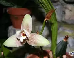 花葶连同幼嫩的假鳞茎和叶从靠近老假鳞茎基部的根状茎上发出,长12—14厘米,初时大部分为鞘所包,仅伸出花序;总状花序长4—6厘米,通常具2朵花;花苞片长圆状披针形,膜质,多少呈舟状,长2—2.5厘米,常围抱花梗与子房;花梗与子房与花苞片近等长;