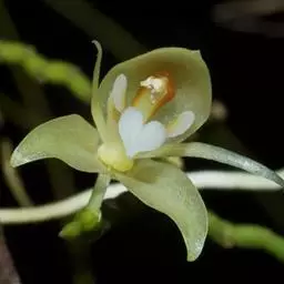 花色泽不详,直径达4厘米;萼片近长圆形,长2.5—2.8厘米,宽7—9毫米,先端渐尖或近短尾状,具5脉;花瓣线形,长2.2—2.4厘米,宽2.5—3毫米;唇瓣卵形,长2.5—2.8厘米,3裂,基部凹陷 ;