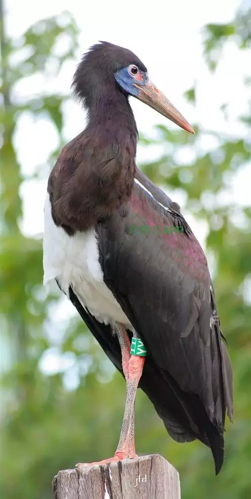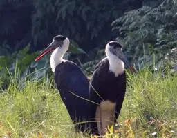 黑鹳(学名:Ciconia nigra):是一种体态优美,体色鲜明,活动敏捷,性情机警的大型涉禽。成鸟的体长为1-1.2米,体重2-3千克;嘴长而粗壮,头、颈、脚均甚长,嘴和脚红色。身上的羽毛除胸腹部为纯白色外,其余都是黑色,在不同角度的光线下,可以映出变幻多种颜色。在高树或岩石上筑大型的巢,飞时头颈伸直。