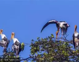 白鹳,也叫 “老鹳”。它体形硕大,长约1.2米,通身羽毛为白色,唯两翅边缘羽毛为黑色。白鹳嘴、腿都很长,亚州白鹳腿为暗红色,而嘴为黑色,分东、西亚种,生活习性与黑鹳基本相似。夏季,我国白鹳的繁殖地有两处:东亚种繁殖地在东北北部山林地区,西亚种繁殖地在新疆西部。深秋或初冬,东北的白鹳南飞长江中、下游或福建、广东和台湾等温暖地区越冬,新疆的白鹳则迁徙到印度、尼泊尔等国的温暖地区越冬。