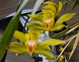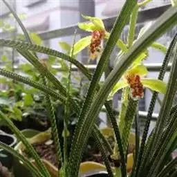 莎叶兰(学名:Cymbidium cyperifolium Wall.ex Lindl.):地生或半附生植物;假鳞茎较小,长1-2厘米,包藏于叶鞘之内。叶4-12枚,带形,常整齐2列而多少呈扇形。花葶从假鳞茎基部发出,直立,长20-40厘米;总状花序具3-7朵花;花与寒兰颇相似,有柠檬香气;萼片与花瓣黄绿色或苹果绿色,偶见淡黄色或草黄色,唇瓣色淡或有时带白色或淡黄色,侧裂片上有紫纹,中裂片上有紫色斑;花瓣狭卵形,唇瓣卵形,稍3裂。蒴果狭椭圆形。花期10月至次年2月。