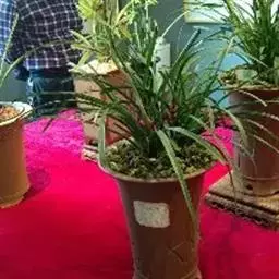 要注意盆底排水,泥盆用碎瓦填,紫砂盆必须用穿孔尼龙纱罩住盆底。植前先在盆内铺上粗石子,占盆深2/5左右,粗石培养土,厚3-5厘米,然后放入兰草。上盆时注意根部要自展,不能卷曲。种植名种兰草时一定要将老草靠边,新草放在中心,这样再发新草就有余地。种植时,左手握持兰草,右手加泥(要防止泥土贯入叶心),再将兰株稍稍提起,使根自然舒展。然后边加土边摇盆,使土与根紧密接触。再用手将茎部四周的泥土按紧,最后使盆面略显馒头状(即中间四周略低)。上面铺覆一层青苔或细石子,这样盆土不易板结并可减少水分蒸发。上完盆,立即浇水。第一次浇水水量要充足。最后将兰盆放置阴处。一个月内不宜直接晒太阳,并控制浇水,不宜太湿,以后放置地点宣选择在半阴半阳、通风透气,早上照到太阳的地方。