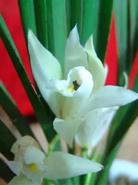 建兰四大铭品之一。夏皇叶形为长鱼肚型,叶尾稍钝,叶面波浪纹稍重!叶片厚实!花为黄白色,稍偏黄,两捧…