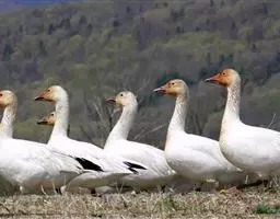 黑雁是雁形目鸭科黑雁属鸟类,又称黑鹅。头、颈、胸、嘴及脚黑褐色;虹膜褐色;背及两翼灰褐色;尾下覆羽白色;胸侧及胁部多近白色纹;颈部两侧各具一个特征性白色横纹,在颈前后断开,未能联成颈环。幼鸟颈部无白斑,而翅上多白色横纹。黑雁繁殖于北美洲、西伯利亚极地的苔原冻土带,越冬于南方沿海的草地及河口。在中国安徽也能见其身影。主要栖息在海湾、海港及河口等地,在冬季里大多出现在有耐碱植物生长的湖泊和水库周围,也出现在周围地势低洼的咸水湖和沿海地区,偶尔还出现在农田地里。性活跃,喜集群,常成群活动和栖息。主要以植物性食物为食。繁殖期在6-8月,雌鸟孵卵,雄鸟通常在距巢100米以内范围内守候警诫。雌鸟孵卵时常将头和颈朝地面平伸出去以降低高度。孵化期为22-28天。黑雁被列入中国林业局2000年8月1日发布的《国家保护的有益的或者有重要经济、科学研究价值的陆生野生动物名