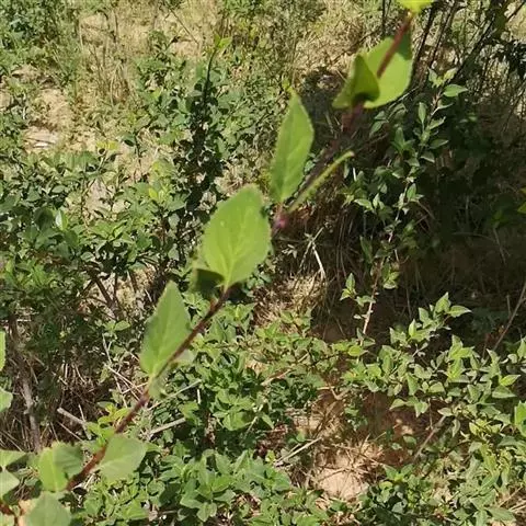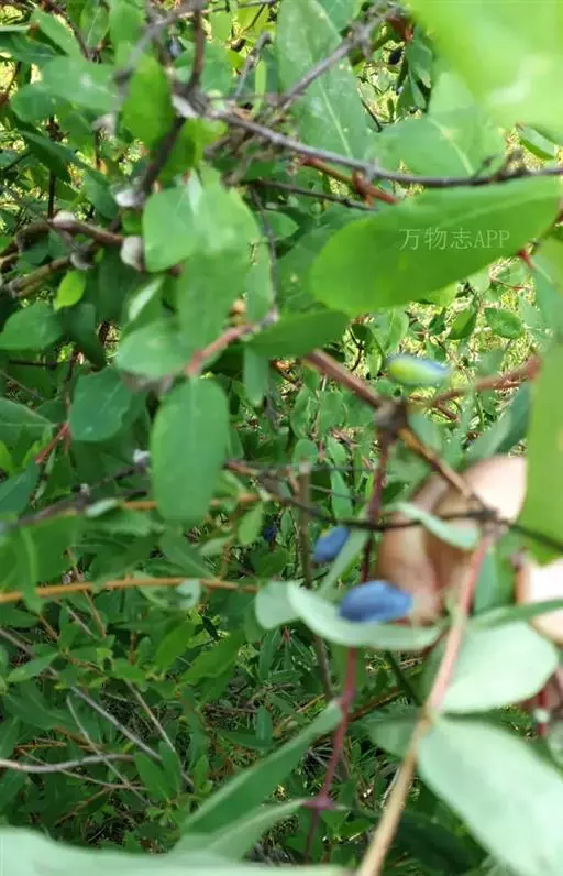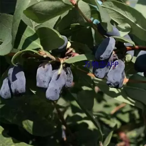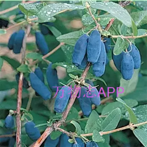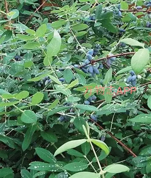 蓝果忍冬 蓝靛果(Lonicera caeruleaL.var.edulis Turcz.exHerd.)幼枝有长、短两种硬直糙毛或刚毛,老枝棕色,壮枝节部常有大形盘状的托叶,茎犹如贯穿其中。冬芽叉开,长卵形,顶锐尖,有时具副芽。叶矩圆形、卵状矩圆形或卵状椭圆形,稀卵形,长2-5(-10)厘米,顶端尖或稍钝,基部圆形,两面疏生短硬毛,下面中脉毛较密且近水平开展,有时几无毛。总花梗长2-10毫米;苞片条形,长为萼筒的2-3倍;花冠长1-1.3厘米,外面有柔毛,基部具浅囊,筒比裂片长1.5-2倍;雄蕊的花丝上部伸出花冠外;花柱无毛,伸出。复果蓝黑色,稍被白粉,椭圆形至准圆状椭圆形,长约1.5厘米。花期5-6月,果熟期8-9月。分布于中国黑龙江、吉林、辽宁、内蒙古、河北、山西、宁夏、甘肃南部、青海、四川北部及云南西北部。朝鲜、日本和苏联远东地区也有分布。生长在海拔2600-3500米的落叶林下或林缘荫处灌丛中。