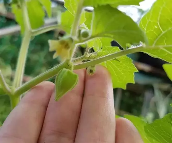 苞片大,菱状卵形,长达1.5厘米,密生微糙毛,边缘具刚毛状缘毛,果时张开;相邻两萼筒仅基部联合,深紫蓝色,无毛,萼檐浅蓝色,有浅波状齿或近截平;花冠黄色,长1.5-1.8厘米,外部光滑或上部疏生微毛,裂片5,卵圆形几相等,花管细长,长约为裂片的3倍,基部具囊;雄蕊5,花药伸出花冠筒;花柱细长,柱头伸出花冠外。浆果蓝黑色,卵状矩圆形。花期5-6月;果期9月。