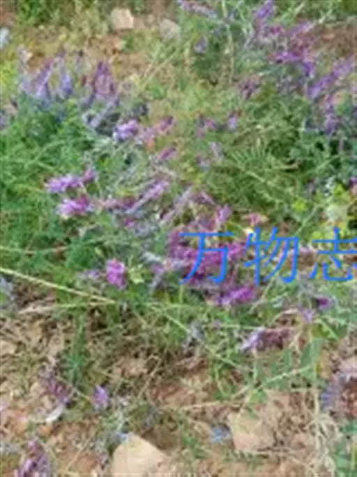 长柔毛野豌豆 一年生草本,攀援或蔓生,植株被长柔毛,长30-150厘米,茎柔软,有棱,多分枝。偶数羽状复叶,叶轴顶端卷须有2-3分支;托叶披针形或二深裂,呈半边箭头形;小叶通常5-10对,长圆形、披针形至线形,长1-3厘米,宽0.3-0.7厘米,先端渐尖,具短尖头,基部楔形,叶脉不甚明显。