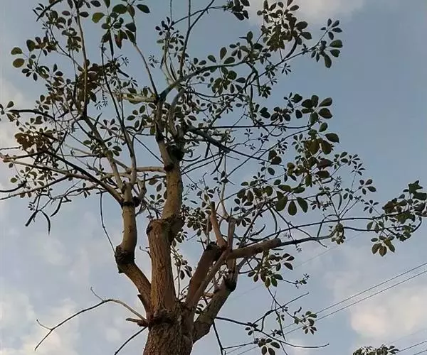 4、修剪整形:黄钟木生长期间定期进行修剪整形,剪去低矮的分生侧枝,冬季落叶后应统一进行一次修枝整形,剪去病枝、枯死枝和低矮处分生的偶侧 枝,才保持主干生长通直。当主干长高1.8~2米时,保留顶上的枝条形成树冠,经过3~4年的大田培育,在植株高达3米以上,径粗4~6厘米时可出圃绿 化。