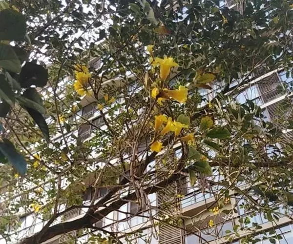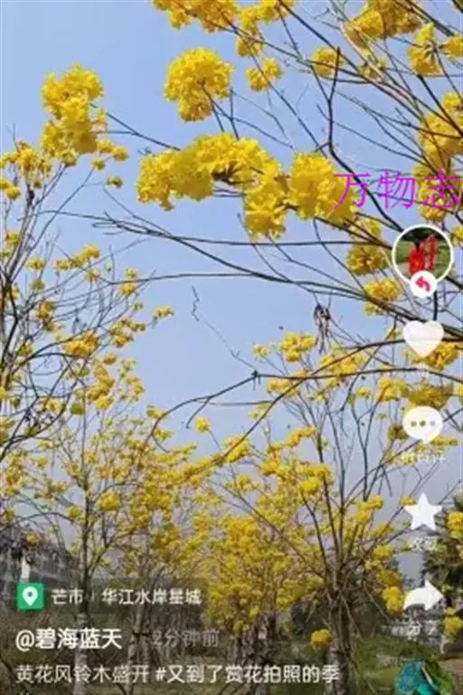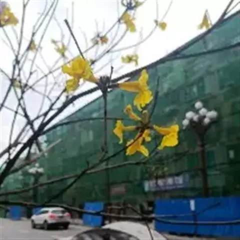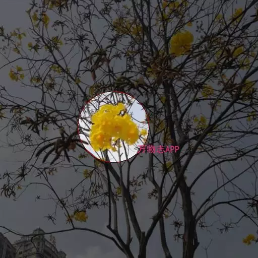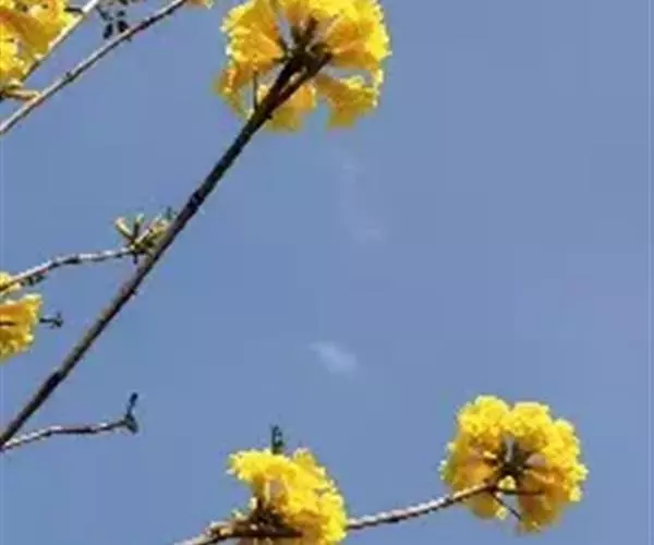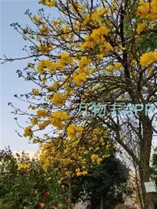 黄钟木【学名:Tabebuia chrysantha (Jacq.) Nichols.】,紫葳科、黄钟木属 落叶小乔木,原产中南美洲。常作为优良的行道树,也可种植在庭院、校园、住宅区等地,花色金黄明艳,适合公园、绿地等路边、水岸边栽培观赏。
