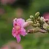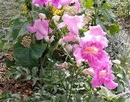 粉花凌霄 K.Schum.)是紫葳科魔盒凌霄属的落叶藤本植物。奇数羽状复叶对生,小叶全缘,…