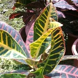 变叶木 Rumph. ex A. Juss.)是大戟科灌木或小乔木,高可达2米。枝条无毛。叶薄革质,…
