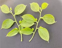 1、症状:橡胶树向粉病侵害橡胶树的嫩叶、嫩芽及花序,不危害老叶。感病初期,嫩叶出现辐射状透明菌斑,之后病斑上出现白粉;病斑初期多数为圆形,后期为不规则形。病害严重时,病叶布满白粉,叶片皱缩畸形,最后脱落。花序感病后也出现白色不规则形病斑,严重时花蕾大量脱落、凋萎。