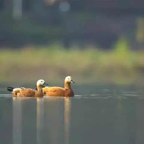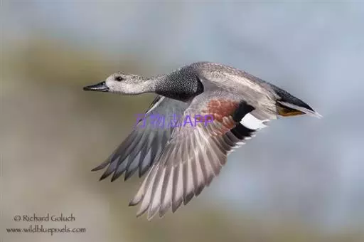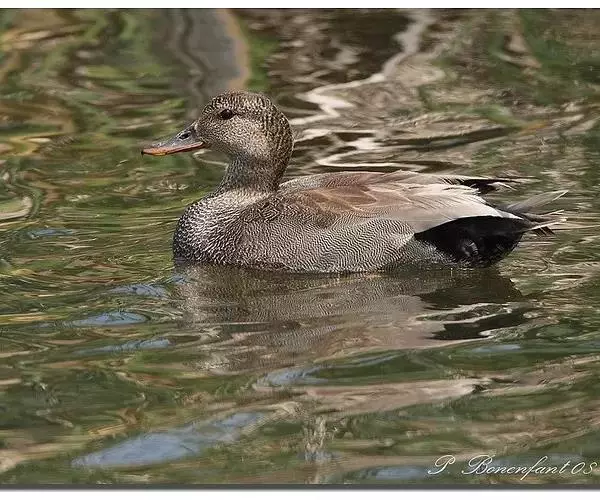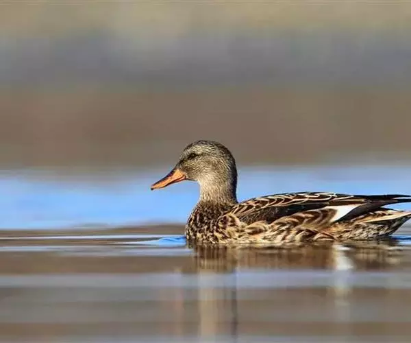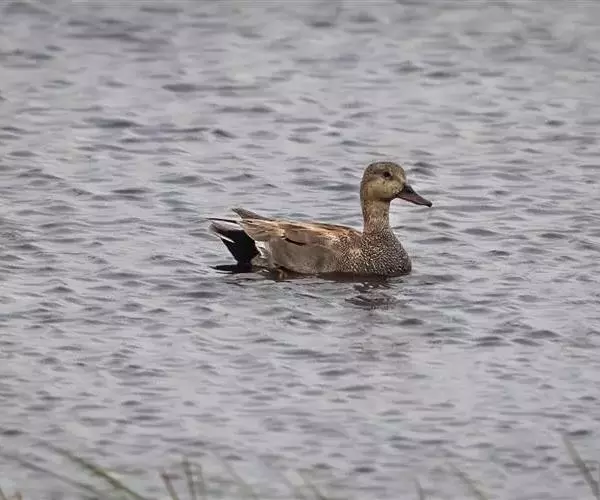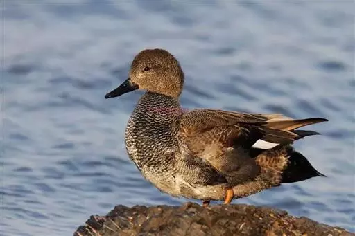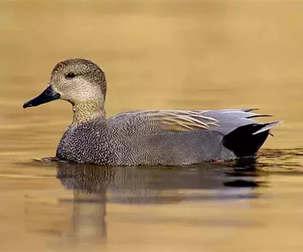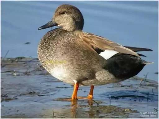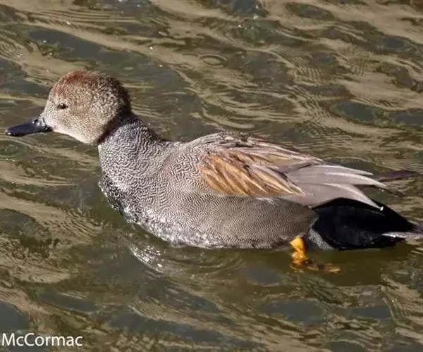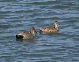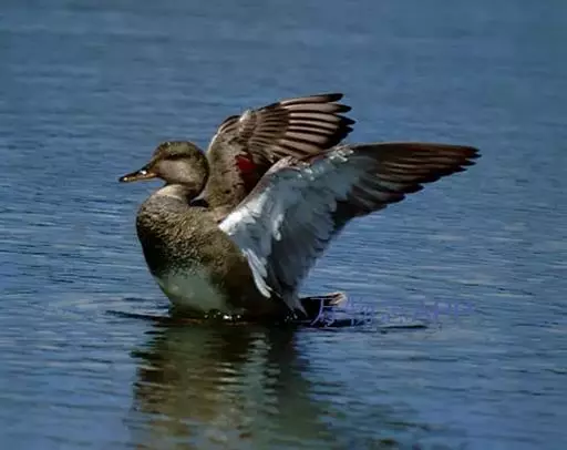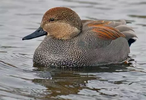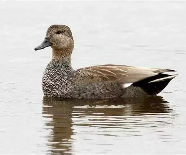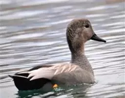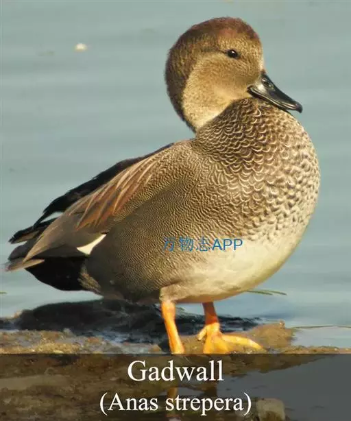 赤膀鸭(学名:Anas strepera)中型鸭类,个体较家鸭稍小,体长44-55厘米,体重0.7-1千克。雄鸟嘴黑色,脚橙黄色。上体暗褐色,背上部具白色波状细纹,腹白色,胸暗褐色而具新月形白斑,翅具宽阔的棕栗色横带和黑白二色翼镜,飞翔时尤为明显。雌鸟嘴橙黄色,嘴峰黑色。上体暗褐色而具白色斑纹,翼镜白色。以水生植物为主。常在水边水草丛中觅食。觅食时常将头沉入水中,有时也头朝下,尾朝上倒栽在水中取食。繁殖于冰岛、英国东南部,往东横跨欧洲、亚洲一直到堪察加半岛,往南到荷兰、德国、俄罗斯中部、里海、中亚、加拿大和美国;越冬在欧洲南部、中国南部、日本、越南、印度、北非和北美南部和太平洋中的范宁岛。