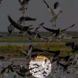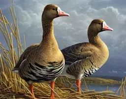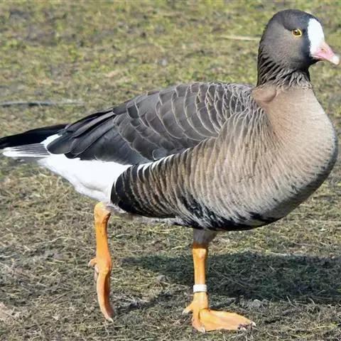 豆雁,雁形目鸭科。成鸟头、颈、背灰褐色,带淡黄色羽缘;尾上覆羽白色,尾羽黑褐色带白端,…