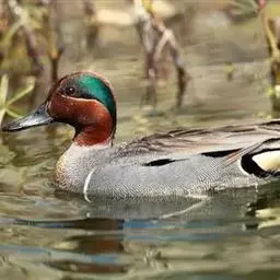 绿翅鸭是小型鸭类,体长37厘米,体重约0.5千克。嘴脚均为黑色。雄鸟头至颈部深栗色,…