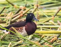 青头潜鸭,是雁形目鸭科潜鸭属的迁徙性鸟类。雄性头部和颈部为黑色,有绿色光泽,上体为黑褐色,…