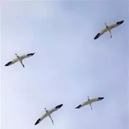 雪雁是鸭科雁属鸟类,雁属中体形大,个体重的鸟类。羽毛洁白,翼角黑色。飞行时双翼拍打用力,振翅频率高。…