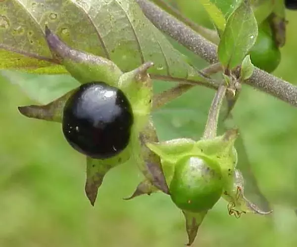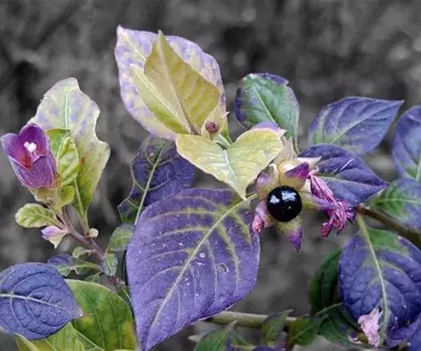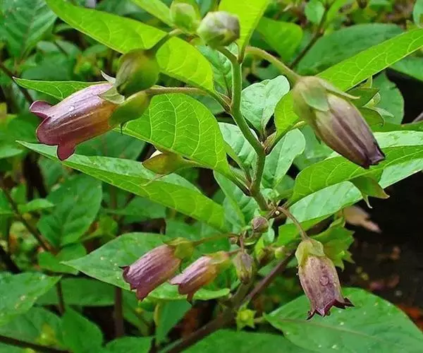 颠茄里面的致命毒素,如果吸入足够的剂量,将严重影响影响到中枢神经系统,这些毒素神不知鬼不觉地麻痹侵入者肌肉里面的神经末梢,比如血管肌,心脏肌和胃肠道肌里面的神经末梢。在其叶、果实和根部含有毒性成分颠茄生物碱、莨菪碱等。当它长到2-4英尺( 0.6-1.2米)高的时候,毒性最强,这时候它的叶子显深绿色,花为紫色钟型状。