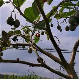 浆果球状,直径1.5-2厘米,成熟后紫黑色,光滑,汁液紫色。每浆果种子多数,80-180粒,种子细小,千粒重0. 6-0.8g,扁肾形,有网纹,黑褐色,长1.5-2毫米,宽1.2-1.8毫米。花期6-8月,果期7-9月。