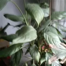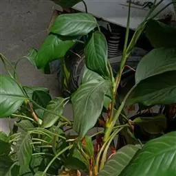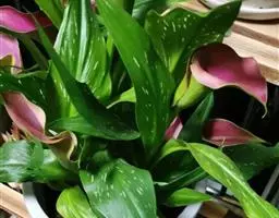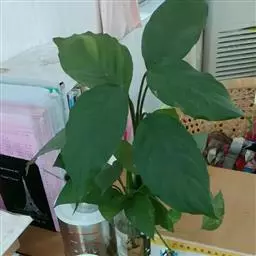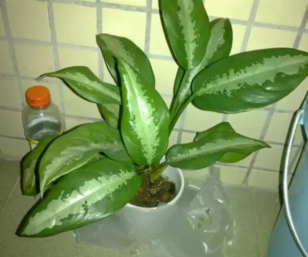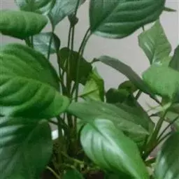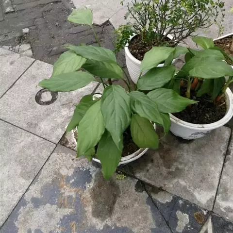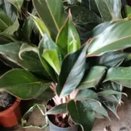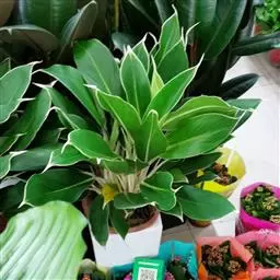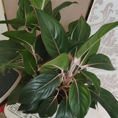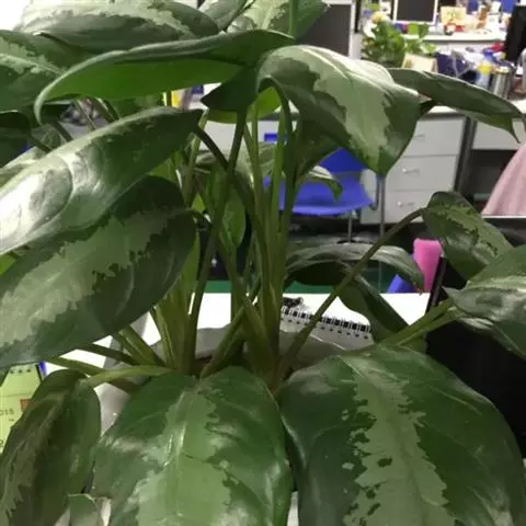 雅丽皇后又名白雪粗肋草、银河粗肋草。植株直立,叶片披针形,革质,锐尖,叶深绿色。中肋两侧具银灰色大块条状斑块,叶缘与中脉处为暗绿色。本种生长势强,易生分枝。耐阴性极强。银河粗肋草:叶阔披针形,沿中肋有银灰色宽条斑。
