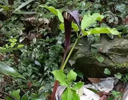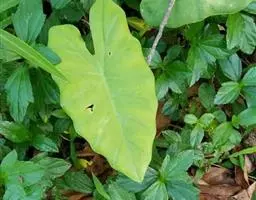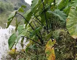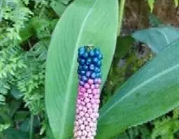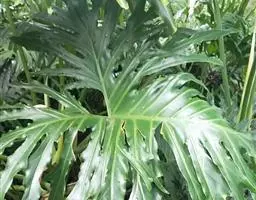 植株直立,叶片披针形,革质,锐尖,叶深绿色。中肋两侧具银灰色大块条状斑块,叶缘与中脉处为暗绿色。本种生长势强,易生分枝。耐阴性极强。银河粗肋草:叶阔披针形,沿中肋有银灰色宽条斑。