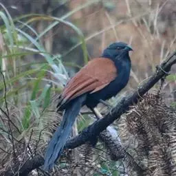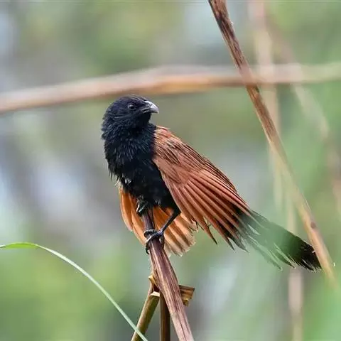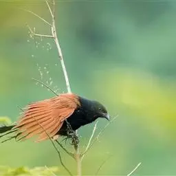 小鸦鹃,是杜鹃科、鸦鹃属的中型鸟类,体长30-40厘米,外形似褐翅鸦鹃,通体黑色,肩和翅栗色,…