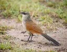 成鸟体长26-30厘米,体重55-56克。有一条长长的尾巴,上面是棕色,下面是黑色和白色相间,下颌至鸟喙有带黄色的一个黑色弧形。头部和上身部位棕色,下体是白色。眼部周围有黄色环。在飞行显示肉桂的翅膀。亚成鸟和成鸟相似,但下尾面黑色换成灰色。