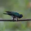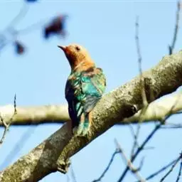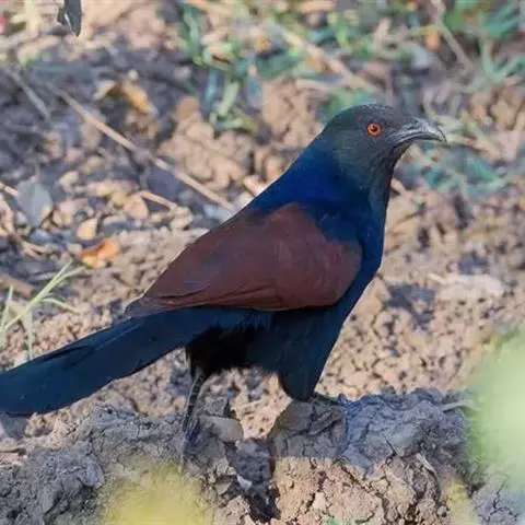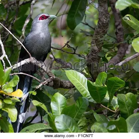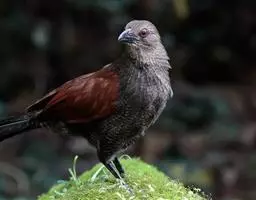 绿嘴地鹃:体形似小鸦鹃,但羽色大致绿灰;嘴绿色,头侧眼的周围有一裸区;后爪弯曲。虹膜赤红色,…