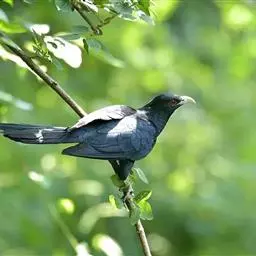 噪鹃是鹃形目杜鹃科噪鹃属鸟类,又名栽秧雀、哥好雀。雄鸟通体乌黑泛幽蓝色金属光泽,…